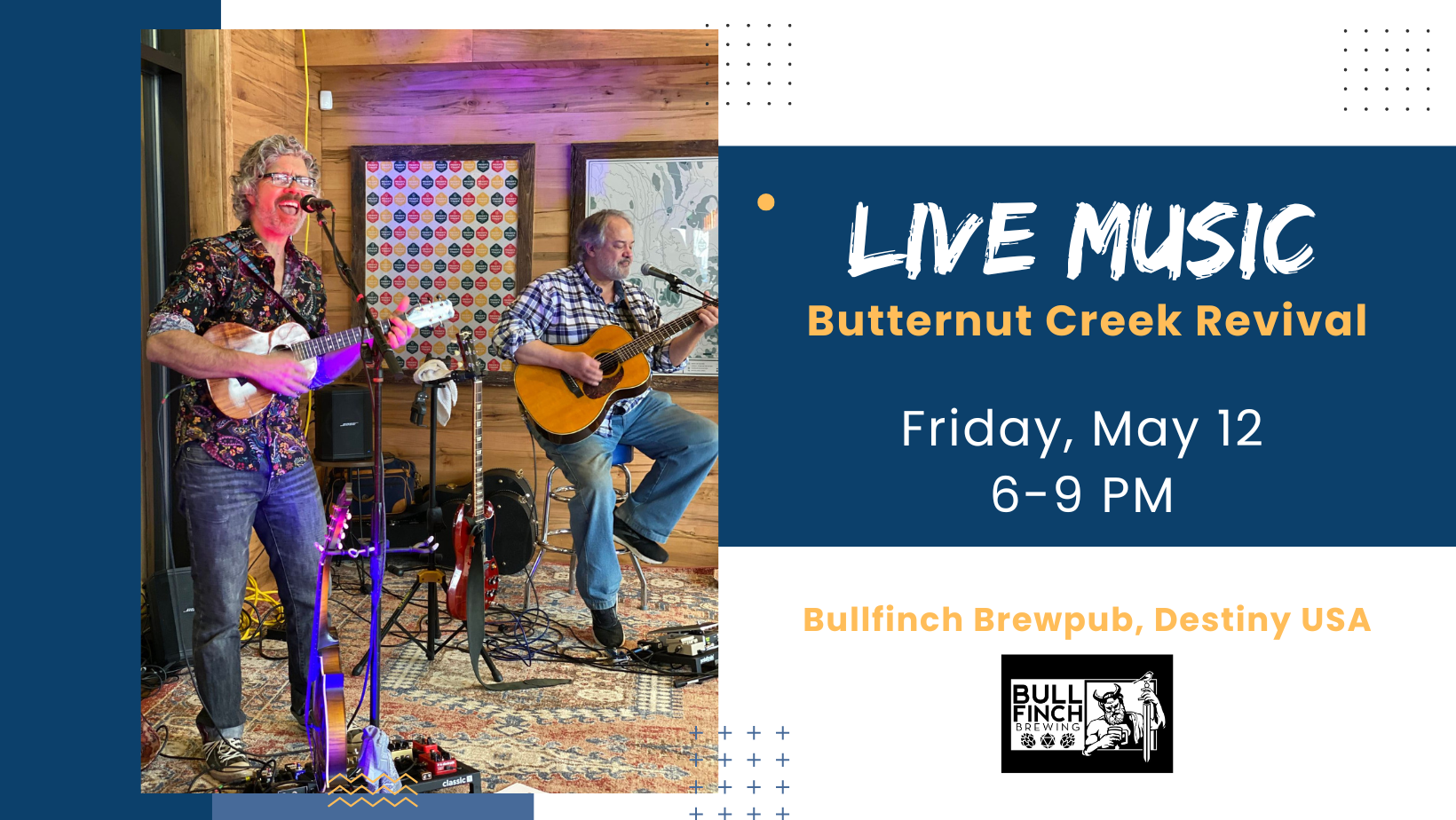 Live music from 6 PM – 9 PM! Friday, May 12