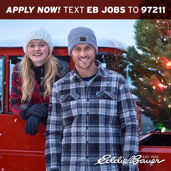 Love to Shop? Join the Eddie Bauer seasonal team and save 60% on your holiday wardrobe. They offer flexible holiday hours and generous employee discounts. #makeworkanadventure