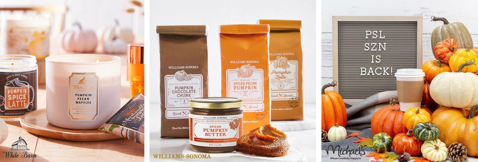 - White Barn: Ahh-tumn in a jar. White Barn 10 different fall scents that’ll have you falling in love.