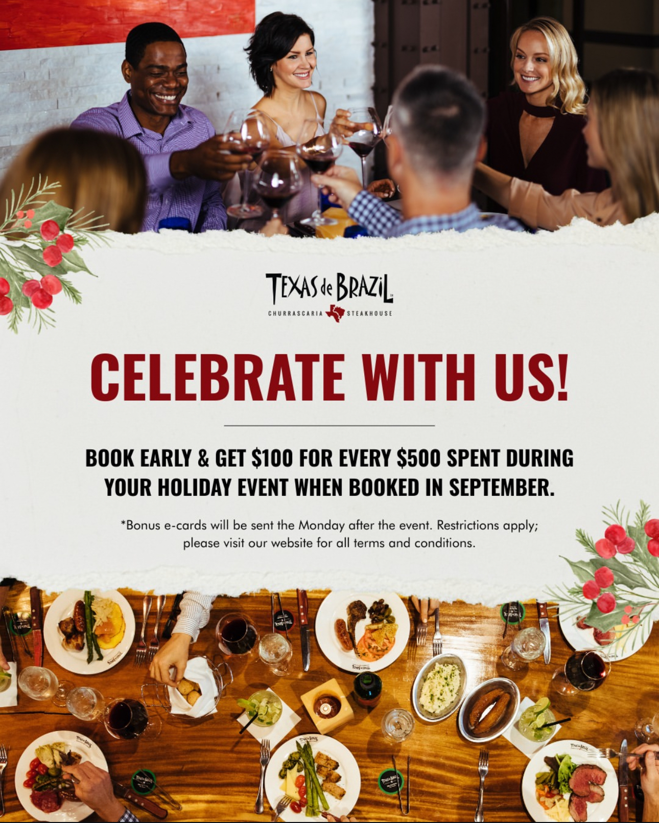 Reserve your holiday event in September and get $100 back in certificates for every $500 spent