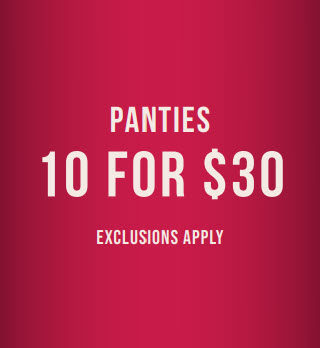 Selected panties are 10 for $30 *exclusions apply
